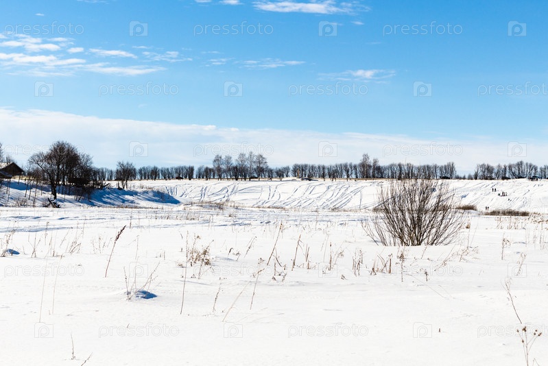 Снежный ландшафт с замерзшей рекой в Суздале