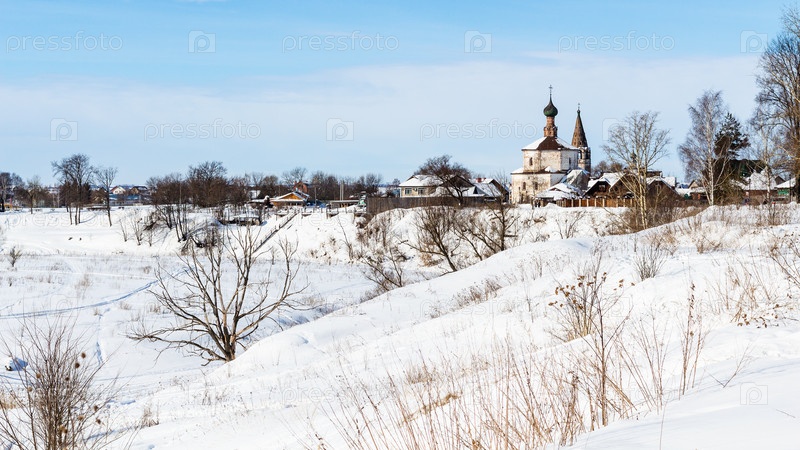 Городской пейзаж города Суздаль с церковью Святого Креста