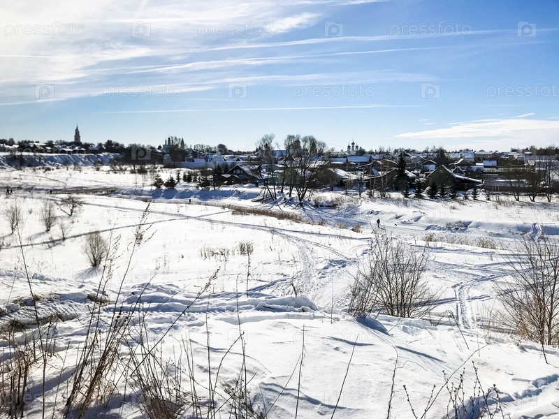 Вид на жилой район Суздаля зимой
