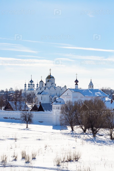 Вид на Покровский монастырь в Суздале зимой