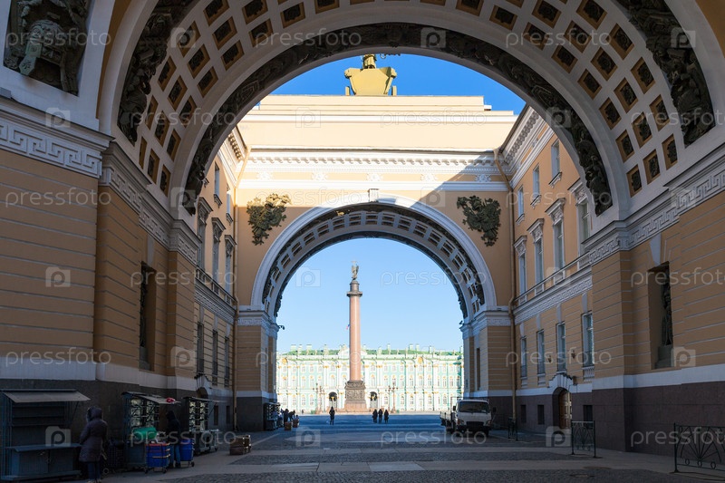 Проход через Арку на Дворцовую площадь утром