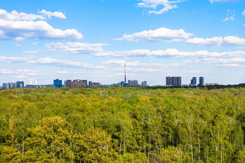 Вид на зеленые леса возле города летом