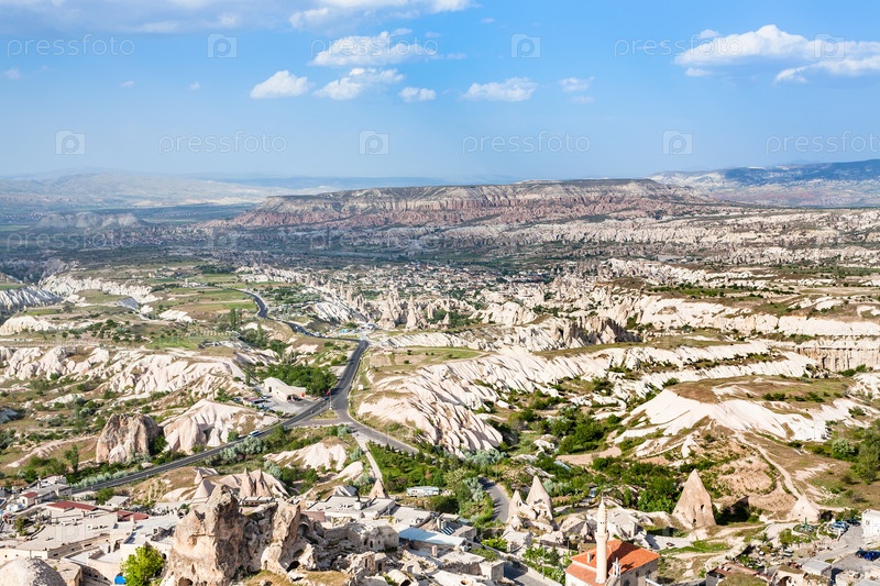 Сверху вид на деревню Учисар и дороги в долине