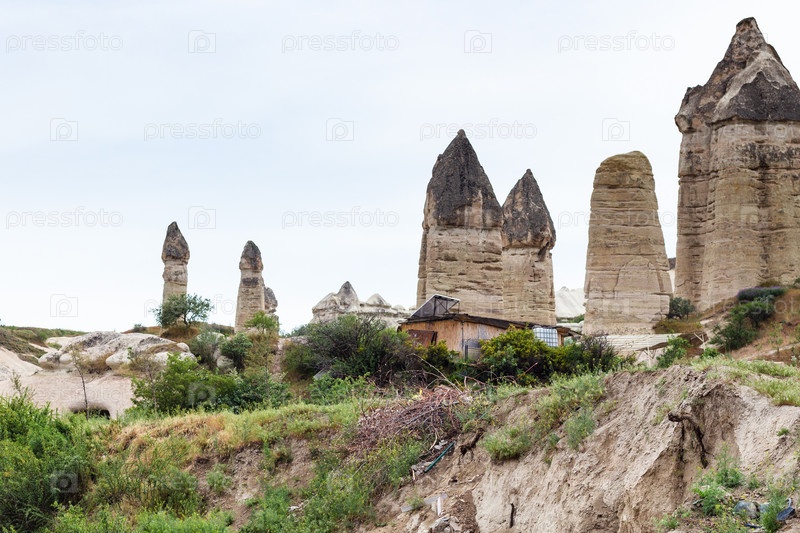 Вид на скалы ферийного дымохода в парке Goreme