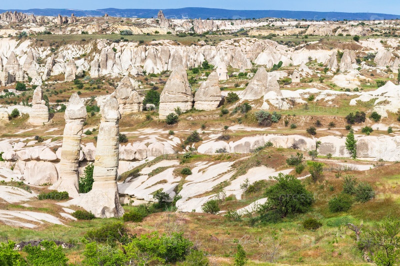 Прекрасный пейзаж с скалами ферийного дымохода в Каппадокии