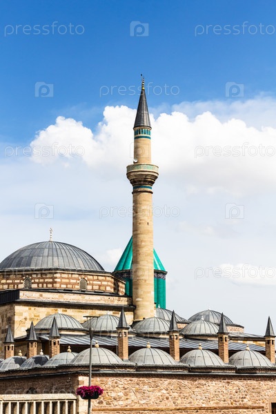 Минарет и крыши мавзолея Руми в Конье