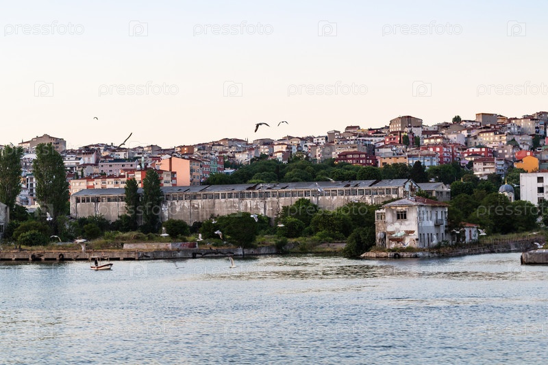 Вид на море в городе Стамбуле весенним вечером