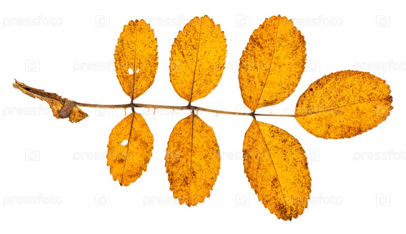 Ветвь с осенними желтыми листьями растения собачьей розы