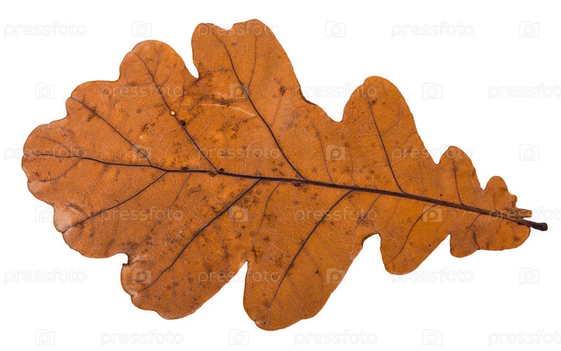 Выпавший сухой лист дуба, изолированный на белом