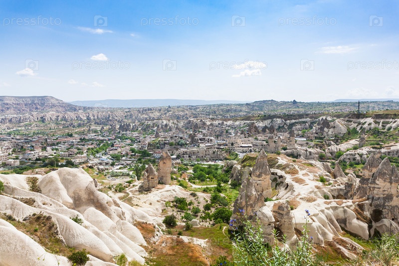Сверху вид на скальные дома и город Гореме