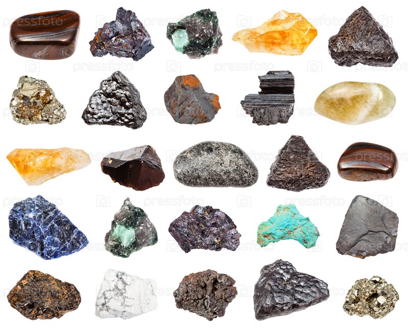 Различные минералы изолированы на белом фоне