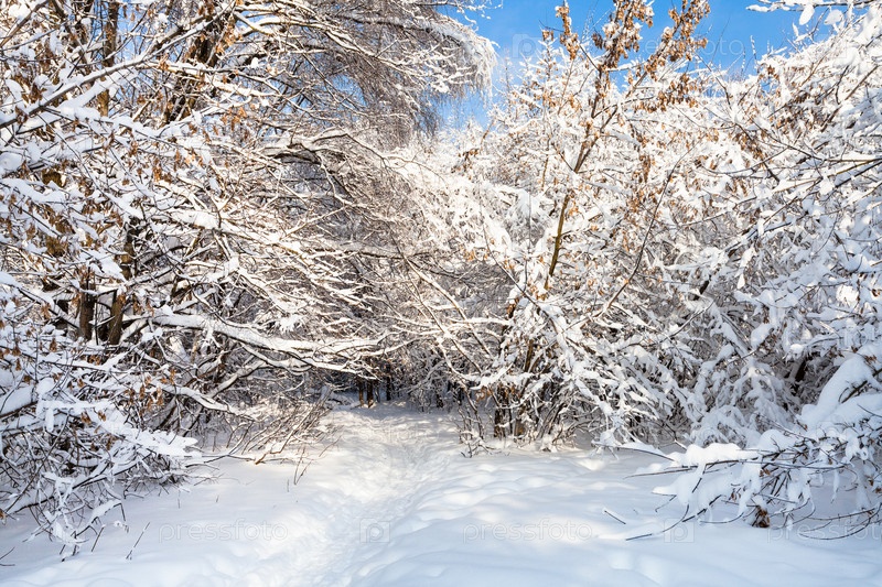Заснеженная тропа в лесном парке зимнее утро