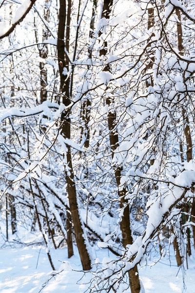 Заснеженные деревья в солнечный зимний день