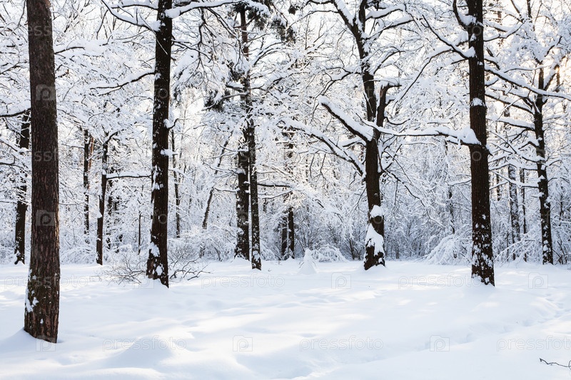 Снежная луга в лесном парке зимнее утро