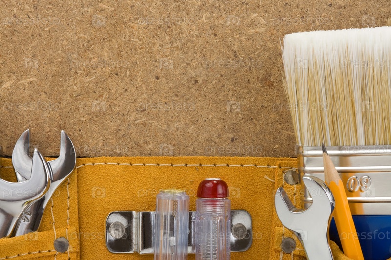 Инструменты в поясе на деревянном фоне