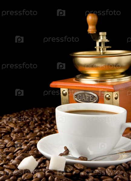 Чашка кофе и мельница на бобах
