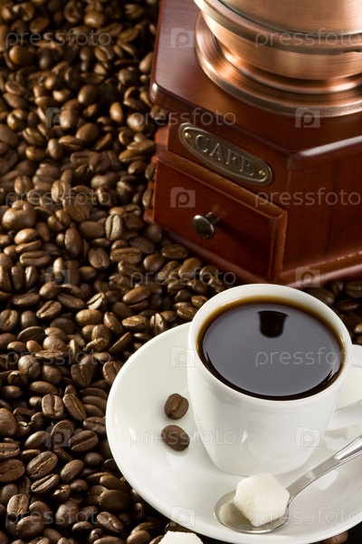 Чашка кофе и мельница
