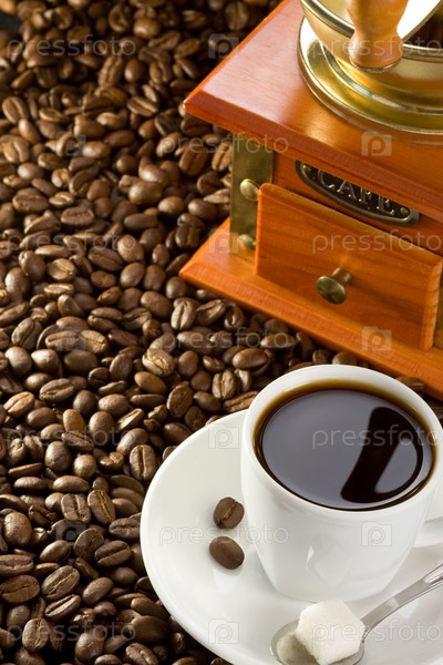 Чашка кофе и мельница