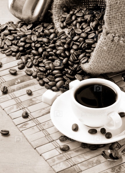 Чашка кофе и жареные бобы