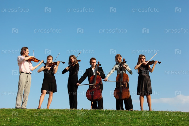 Скрипачи и виолончелисты на природе
