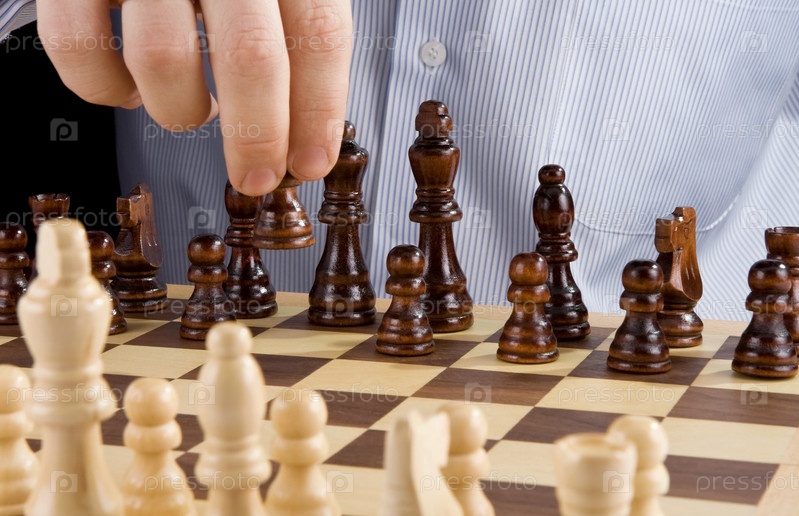 Мужская рука движущейся шахматной фигуры