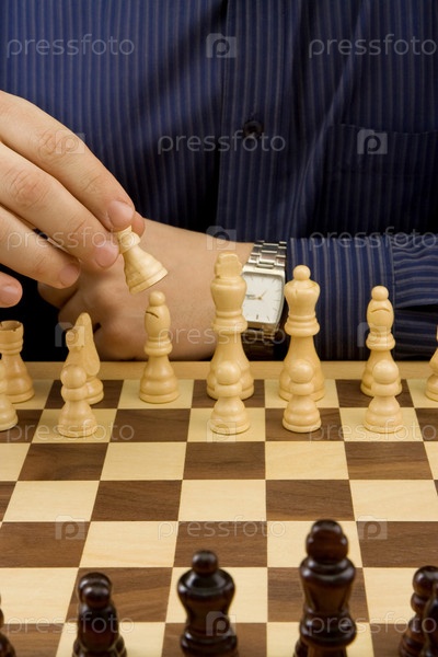 Человек рукой движущейся шахматы черная фигура