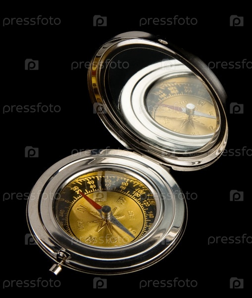 Золотой компас, изолированный на черном