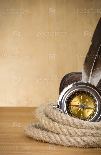 Судовые веревки и компас на дереве