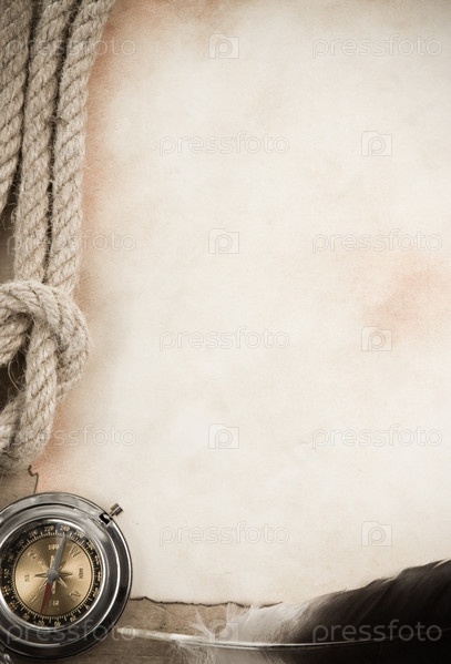 Старые бумаги и перья с веревкой