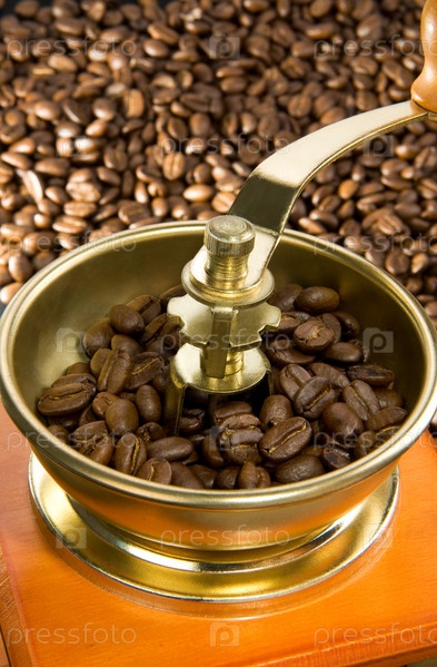 Кофейная мельница и жареные бобы