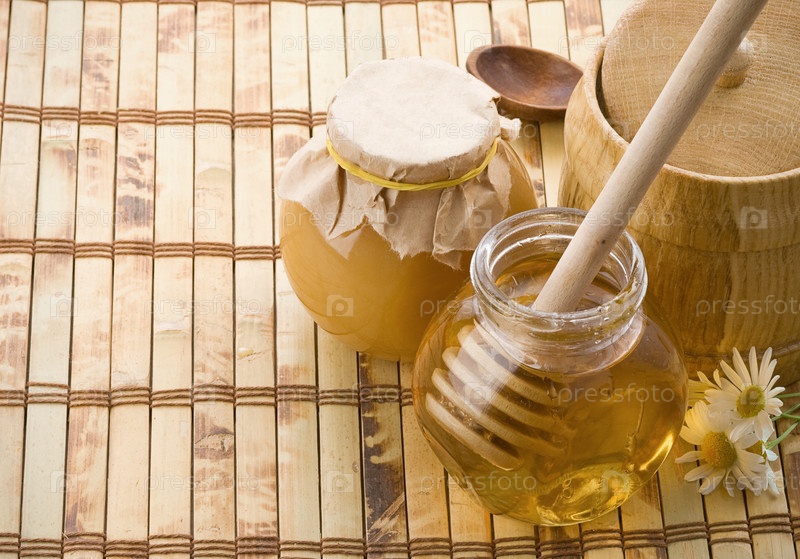Банка с медом и цветами