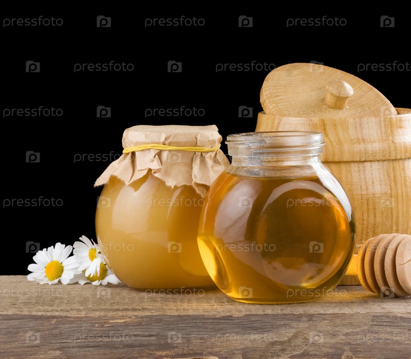 Мед и цветы изолированы на черном