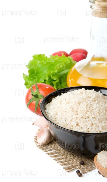 Рис и питательная пища изолированы на белом