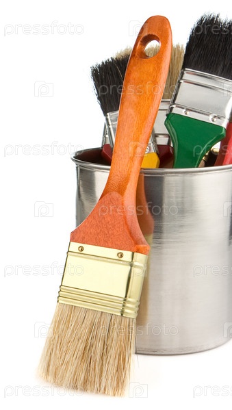 Ведра и кисть изолированы на белом