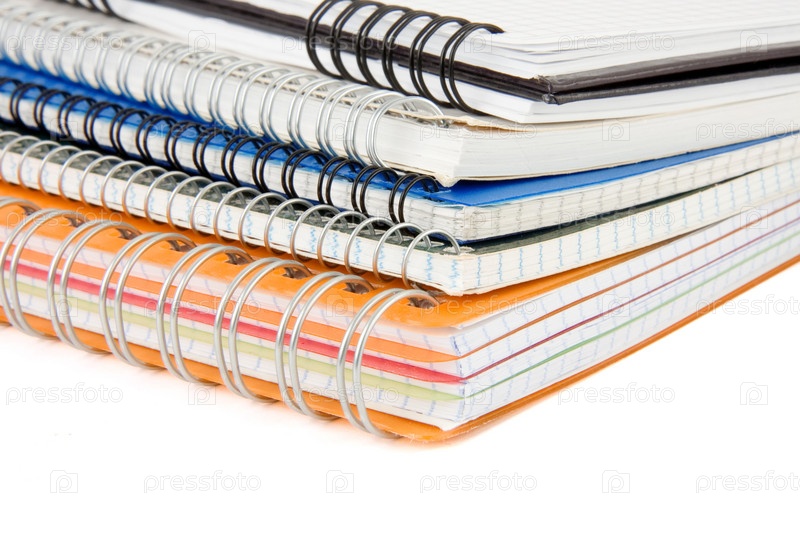Куча проверенных тетрадей, изолированных на белом
