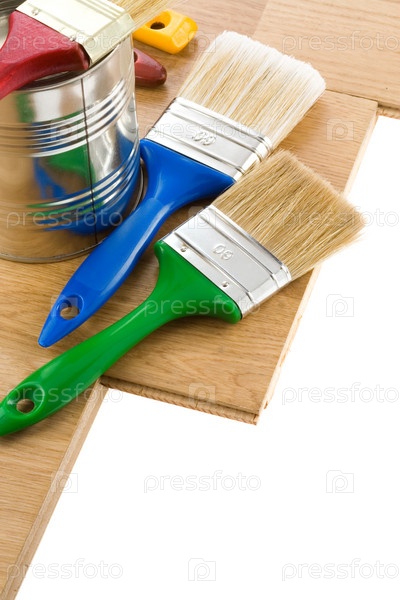 ведра и щетка на белом краске
