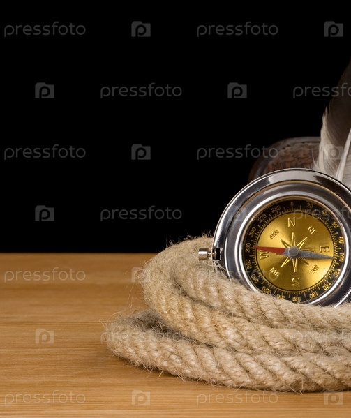 Верёвки и компас изолированы на черном