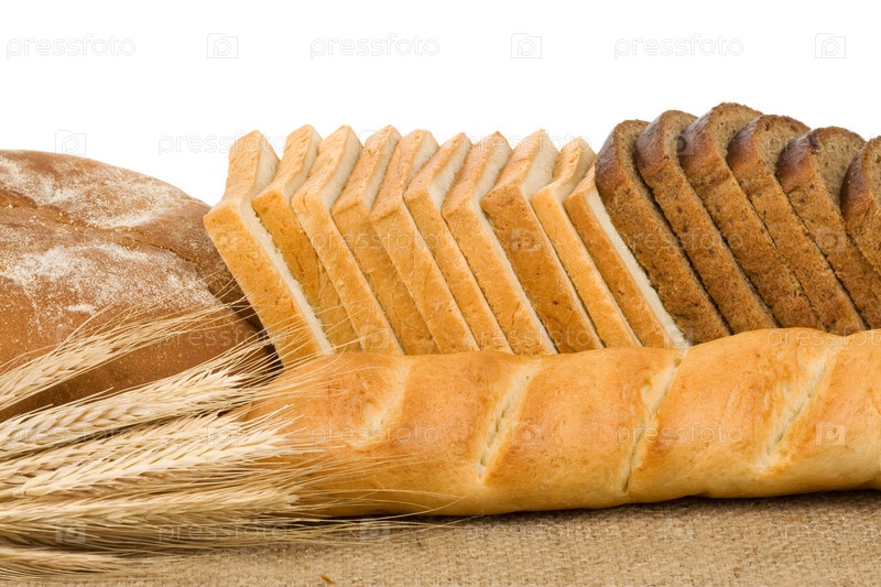Хлеб и хлебобулочные изделия на белом