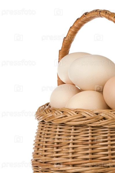 Яйца и корзина изолированы на белом