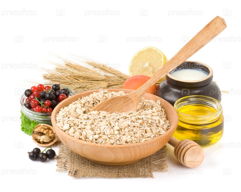 Набор овсяных хлопьев, изолированный на белом