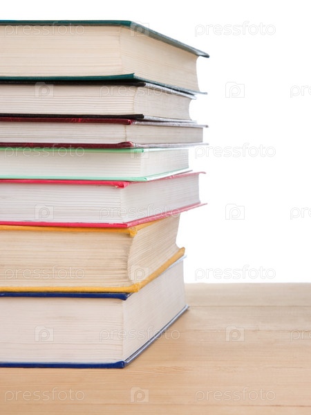 Куча старых книг, изолированных на белом