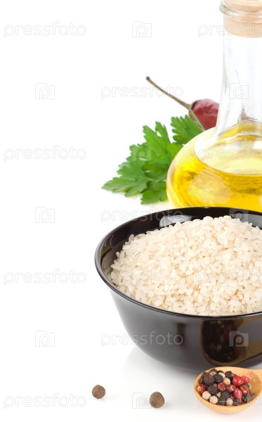Рис и здоровая еда на белом