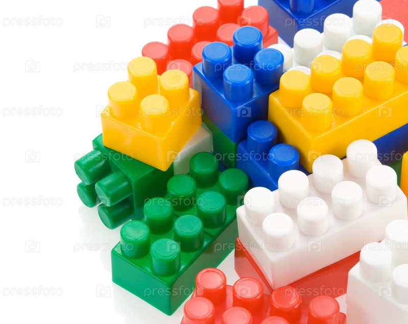 Красочные пластиковые игрушки на белом фоне