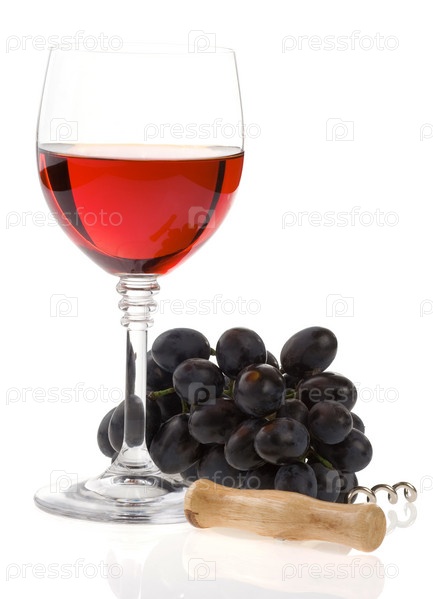 Вино в стакане и виноград