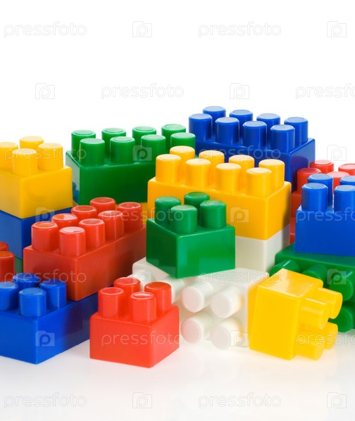 Красочные пластиковые игрушки изолированы на белом