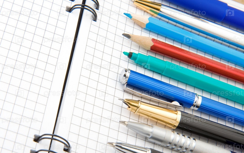 Ручка и карандаш на ноутбуке