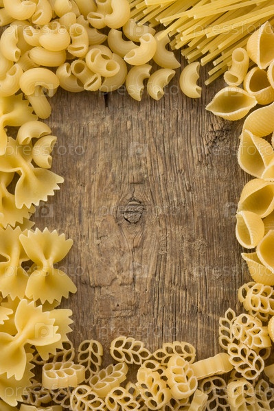 Сырая макароны на деревянном фоне