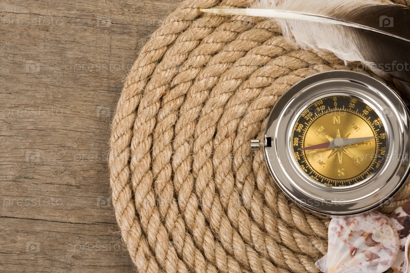 Судовые веревки и компас на дереве
