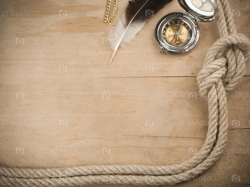 Судовые веревки и компас на дереве