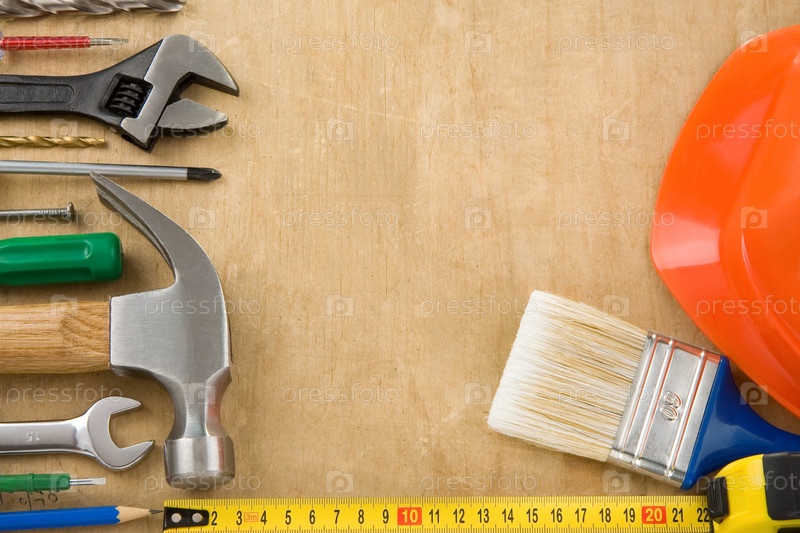 Набор инструментов на деревянном фоне